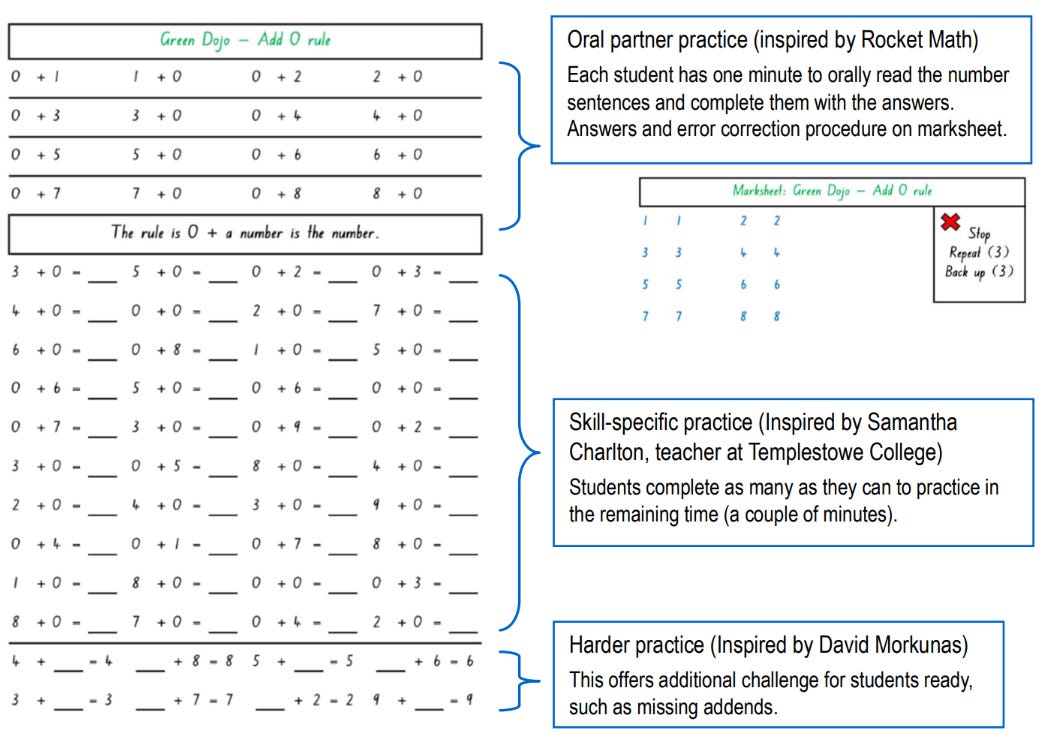 The set size was limited. For example, we might work on 2x tables for a week. Set size crops up again and again (see bite-sized practice) in maths fluency research.